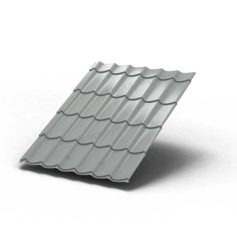 Профиль имитирует натуральную черепицу с волнообразной формой, где высота волны составляет 24 мм, а шаг — 350 мм. Это обеспечивает жесткость и эстетичность конструкции.
