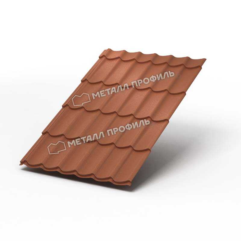 Металлочерепица Ламонтерра XL от Металл-Профиль представляет собой высококачественный кровельный материал толщиной 0,5 мм с покрытием NormanMP в оттенке RAL 8004 Коричневая медь. Этот продукт сочетает в себе прочность металла, эстетичный дизайн и долговечность, идеально подходя для современных крыш. Он обеспечивает надежную защиту от атмосферных воздействий и придает зданию стильный вид, имитирующий натуральную черепицу.