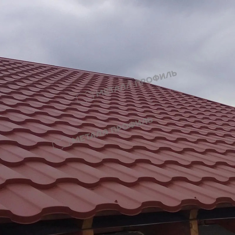 Металлочерепица с профилем Монтекристо-M толщиной 0,5 мм и покрытием PURMAN® в цвете RAL 3005 Красное вино представляет собой надежный кровельный материал от компании Металл-Профиль. Этот продукт сочетает эстетику классической черепицы с прочностью металла, обеспечивая долговечность и привлекательный внешний вид для крыш жилых и коммерческих зданий.