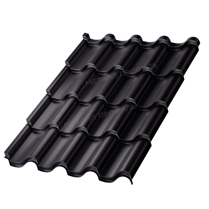 Металлочерепица с профилем Монтерроса-SL толщиной 0,5 мм и покрытием PURMAN® в цвете RAL 9005 представляет собой надежный кровельный материал, сочетающий эстетику классической черепицы с прочностью металла. Это решение идеально для современных домов, обеспечивая долговечность и стильный вид в темных тонах.