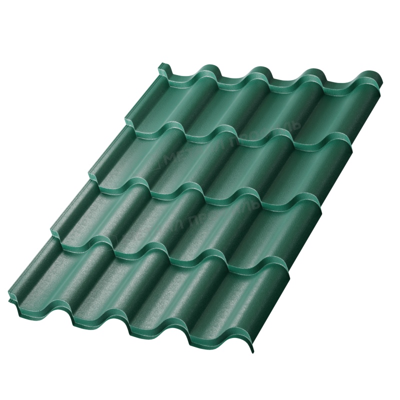 Металлочерепица Монтерроса-XL от компании Металл-Профиль представляет собой надежный кровельный материал толщиной 0,5 мм с инновационным покрытием VikingMP® E в оттенке RAL 6005 Зеленый мох. Этот продукт сочетает в себе эстетику натуральной черепицы и современные технологии защиты от внешних воздействий, идеально подходя для частных домов и коммерческих объектов. Благодаря матовой поверхности и глубокому профилю, она обеспечивает долговечность и привлекательный внешний вид крыши на долгие годы.