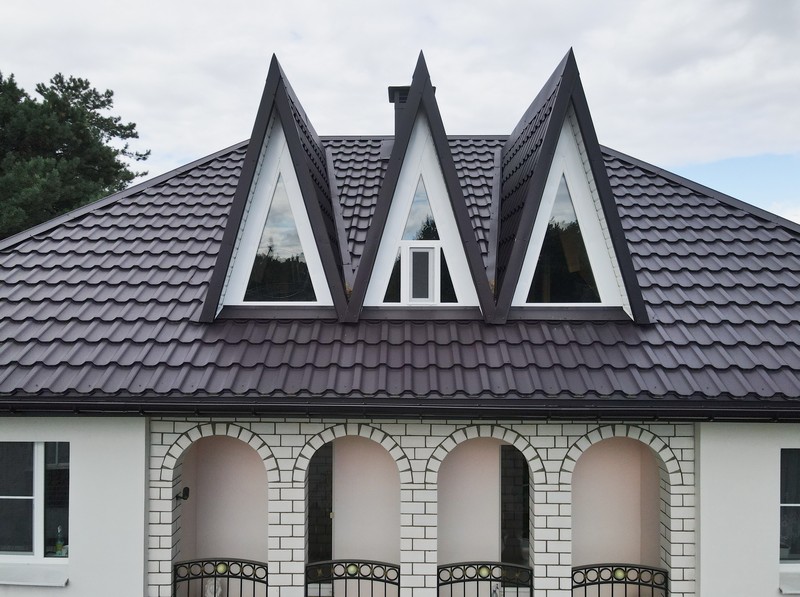 Профиль Трамонтана-XL характеризуется увеличенной высотой волны — до 50 мм, что придает крыше выразительный рельеф, имитирующий натуральную черепицу. Ширина листа составляет 1190 мм с полезной шириной 1100 мм, что позволяет минимизировать отходы при монтаже. Толщина металла 0,5 мм обеспечивает оптимальный баланс между прочностью и весом — всего около 5 кг на квадратный метр. Этот профиль устойчив к снеговым нагрузкам до 200 кг/м² и ветровым порывам до 150 км/ч. Геометрия волн продумана для эффективного отвода воды, предотвращая скопление осадков. В темно-фиолетовом исполнении профиль выглядит элегантно и современно, подчеркивая архитектурные особенности здания.