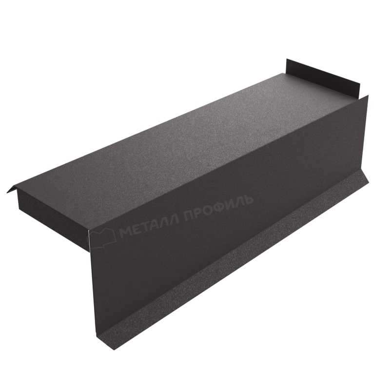 Деталь фронтона защищает боковые торцы здания от агрессивных осадков. Металл 0.5 мм держит ровную линию на длинных участках. Слой VikingMP® E отталкивает влагу от стальной основы, а тон RAL 8019 сохраняет яркость десятилетиями. Стык элементов проходит с нахлестом по направлению ската.