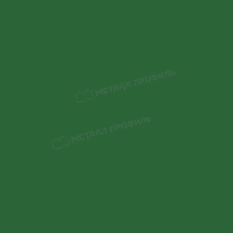 Деталь угла закрывает стык плоскостей на углах здания. Сталь толщиной 0.5 мм — база прочности соединительного узла. Покрытие NormanMP блокирует попадание влаги под обшивку, а цвет RAL 6002 маскирует линию реза листов. Установка профиля исключает появление сквозняков внутри конструкции.
