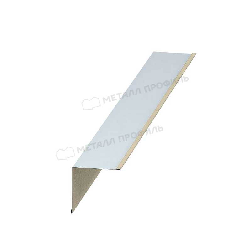 Деталь угла закрывает стык плоскостей на углах здания. Сталь толщиной 0.5 мм — база прочности соединительного узла. Покрытие NormanMP блокирует попадание влаги под обшивку, а цвет RAL 1015 маскирует линию реза листов. Установка профиля исключает появление сквозняков внутри конструкции.