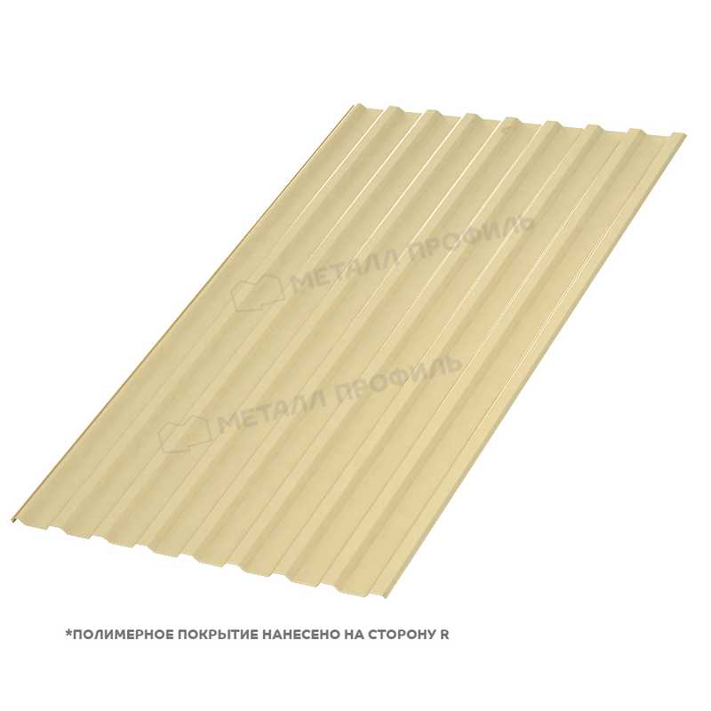 Профлист МП-20 с полиэстеровым покрытием толщиной 0.35 мм в цвете RAL 1014 (слоновая кость) от компании Металл-Профиль представляет собой надежный материал для кровли, фасадов и ограждений. Он сочетает прочность металла с эстетичным внешним видом, обеспечивая долговечность и защиту от внешних факторов.