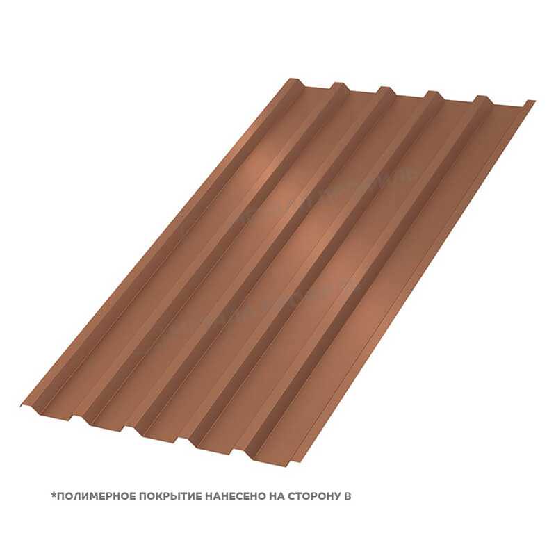 Одно из ключевых преимуществ — долговечность: гарантия на покрытие до 40 лет. Материал легок в установке, не требует специального ухода и экономит на эксплуатации. Цвет Медный металлик добавляет ценность объекту, повышая его рыночную привлекательность. Кроме того, профлист устойчив к пожарам и не поддерживает горение.