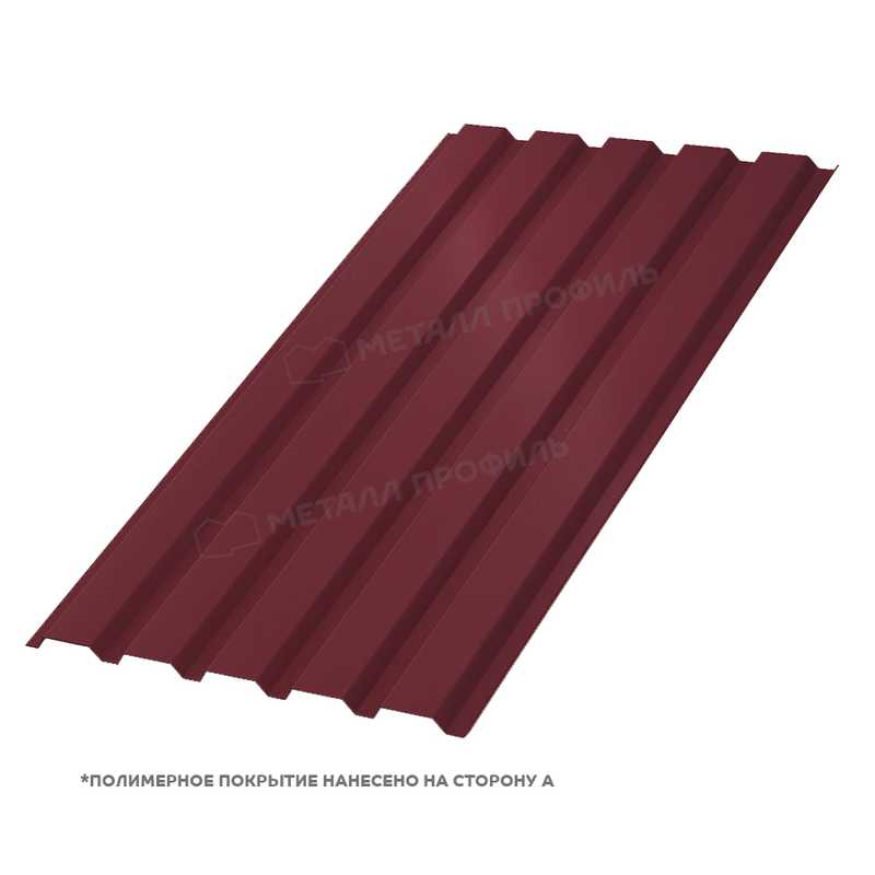 Профлист Металл-Профиль МП-35 с покрытием VikingMP® толщиной 0.45 мм в цвете RAL 3005 Красное вино представляет собой надежный материал для кровли и фасадов. Он сочетает прочность металла с эстетичным матовым покрытием, обеспечивая долговечность и привлекательный вид. Этот профлист идеален для строительства в различных климатических условиях, предлагая отличную защиту от коррозии и механических повреждений.