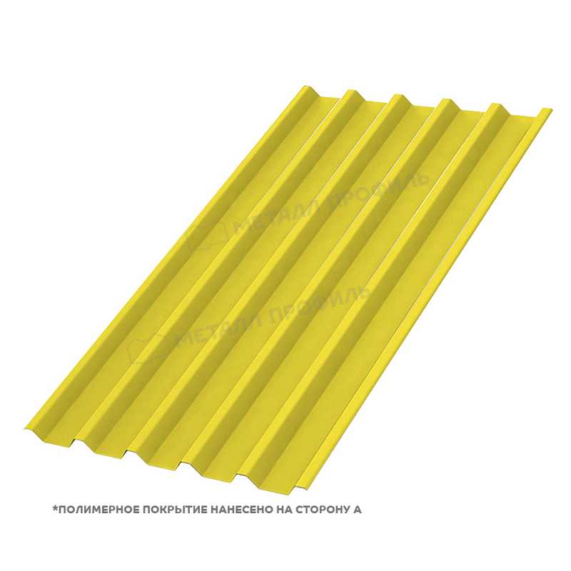 Профлист Металл-Профиль С-44 NormanMP 0.5 мм RAL 1018 Желтый цинк представляет собой надежный материал для строительства и отделки. Изготовленный из оцинкованной стали с полимерным покрытием, он сочетает прочность, эстетику и долговечность. Толщина 0.5 мм обеспечивает оптимальный баланс между весом и стойкостью к нагрузкам. Цвет RAL 1018 добавляет яркий акцент, имитируя оттенок желтого цинка, что делает его подходящим для заборов, кровли и фасадов.