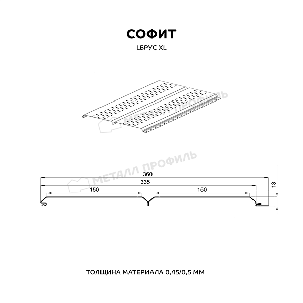 Софит МЕТАЛЛ ПРОФИЛЬ перфор. Lбрус-XL-14х335 (VikingMP E-20-6007-0.5)